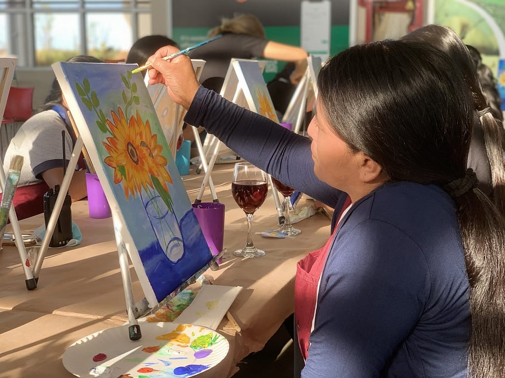 El área de uno de los patios de comida fue adecuada para la misión, mientras realizaban su cuadro las 23 madres disfrutaron de una copa de vino al tiempo de socializar entre ellas sobre esta nueva experiencia.