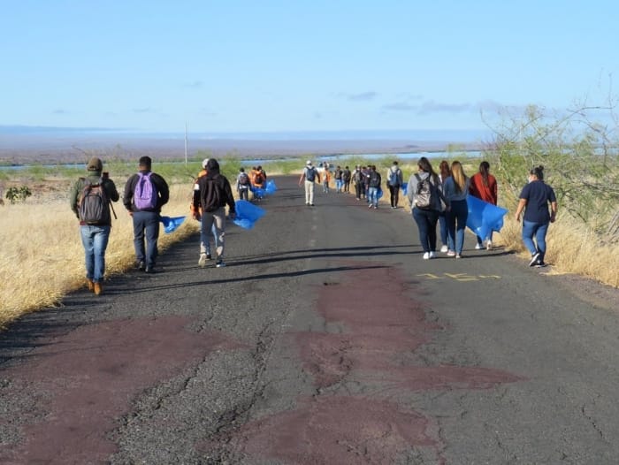 Personal del aeropuerto junto a los guardaparques de la Dirección del Parque Nacional Galápagos y efectivos de la Policía Ambiental,