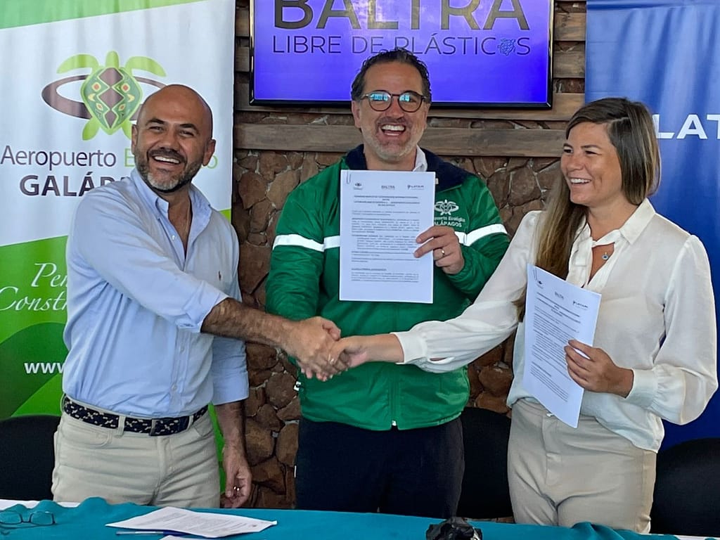 El 22 de julio en las instalaciones del Aeropuerto Ecológico de Galápagos se llevó a cabo el lanzamiento del programa “Baltra libre de plásticos” en conjunto con LATAM Airlines Ecuador y contó con la presencia de las principales autoridades de la provincia, así como con el Ministro del ambiente, agua y transición ecológica, Gustavo Manrique, quien fue testigo de honor de esta iniciativa privada que tiene como principal objetivo ejecutar acciones conjuntas para la mitigación de una de las principales amenazas que enfrenta esta reserva: la generación de desechos y la presencia de plástico en este hábitat natural.
