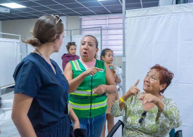 Un proceso de triaje previo permitió una atención más eficiente, y para garantizar una comunicación efectiva, se contó con traductores de español a inglés, facilitando así el entendimiento entre médicos y pacientes. Además, se brindó atención médica a personas con discapacidad, gracias a la presencia de una funcionaria capacitada en lengua de señas, que permitió atender a pacientes que no pueden comunicarse verbalmente.