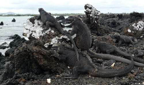 A muy corta distancia de Puerto Villamil se encuentra el islote de “Las Tintoreras” llamado así por la existencia de una grieta de lava con agua tranquila y transparente donde suelen descansar los tiburones de aleta de punta blanca, llamados “tintoreras”. Se puede practicar buceo de superficie en un sector señalizado para esta actividad. En este sitio de visita, se puede observar pingüinos. Horario de visita: De lunes a domingo de 6h00 a 18h00. (Sito de visita del Parque Nacional Galápagos).