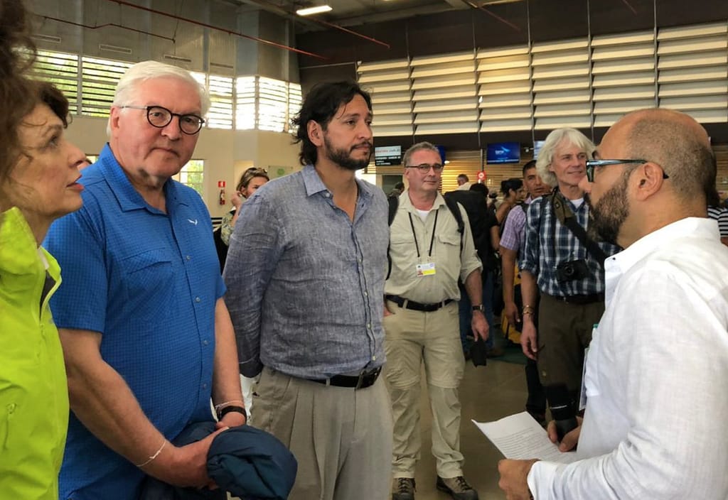 Como parte de su visita oficial a Ecuador, el presidente alemán Frank-Walter Steinmeier, arribó a las islas Galápagos en compañía de su esposa Elke Büdenbender y una delegación de aproximadamente 60 personas, fueron recibidos en el aeropuerto Seymour de la isla Baltra por el Ministro Presidente del Consejo de Gobierno de Galápagos Norman Wray, y el Gerente del aeropuerto ecológico Jorge Rosillo.