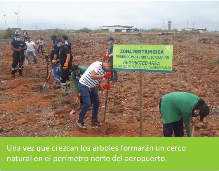 Durante la emergencia sanitaria provocada por COVID19, nuestro personal aprovechó para también extender las áreas de reforestación con vegetación endémica de Galápagos, en sectores aledaños al aeropuerto. Esta actividad la iniciamos en 2014 en diferentes zonas de la isla Baltra.